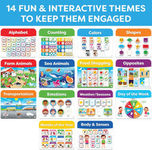 - Learning Topics: Alphabet, numbers, colors, shapes, animals, emotions, weather, time concepts, and more