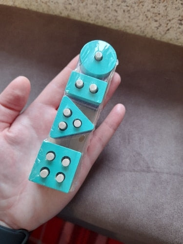 This Wooden Building Blocks encourage shape recognition and problem solving by sorting colorful geometric shapes into matching sticks. Beautifully crafted from wood and painted in bright colors, this set will look great on any Montessori child shelf.
